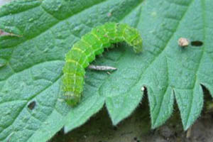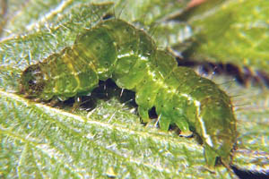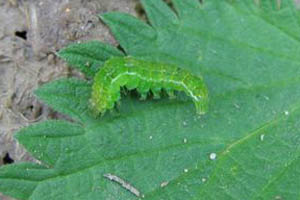 1: Russland, Oblast Moskau, Bezirk Orechowo-Sujewo, Dorf Topolinyy, 118 m, Raupe auf Nessel (Urtica urens) am 5. Mai 2017, Foto 10. Mai 2017 (leg., cult., det. & fot.: Andrey Ponomarev)Forum
