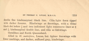 - Original description: Lucas, T. P. (1895): Australian Lepidoptera : Thirty new species. — Transactions of the Natural History Society of Queensland 1: 103-116. Brisbane (Pole, Outridge & Co.).