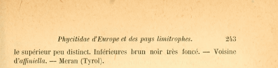- Erstbeschreibung: Ragonot, E.-L. (1887): Diagnoses d'espèces nouvelles de Phycitidae d'Europe et des pays limitrophes. — Annales de la Société entomologique de France. 6e série 7: 225-260. Paris.