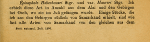 - Erstbeschreibung: Staudinger, O. (1886): Centralasiatische Lepidopteren. — Entomologische Zeitung 47: (4-6) 193-215, (7-9) 225-256. Stettin.