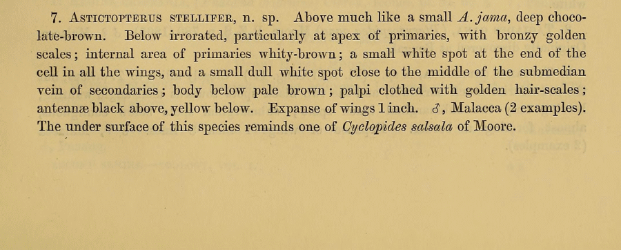 - Astictopterus stellifer Butler, 1879 [Originalkombination]