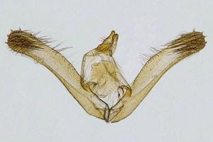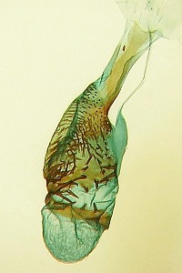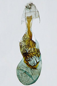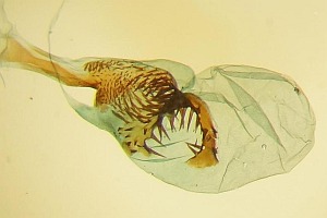2: Genitalpräparat des unter Beleg 2 abgebildeten ♀, Frankreich, Branoux, 31. Juli – 6. August 1993, Lichtfang (Präparation und Mikro-Foto: Friedmar Graf)