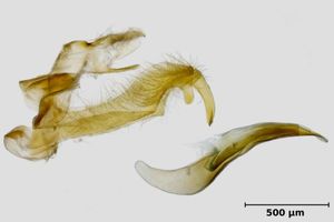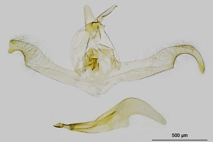 3: ♂, Deutschland, Thüringen, Herbsleben, Bad Tennstedt, Unstrut-Hainich-Kreis, Feuchtgebiet Herbslebener Teiche, 160 m, 51.130°N, 10.869°E, 28. Juni 2024, laterale GU-Ansicht, leg. A. Kopetz, (prep., gen.det. & Foto: Hartmuth Strutzberg) Falter im ForumForum