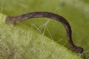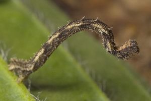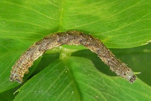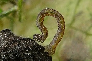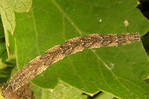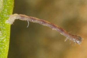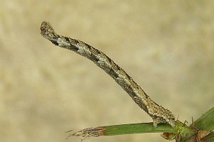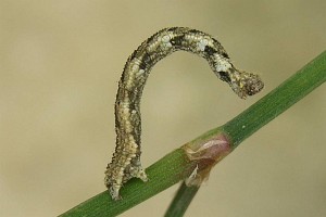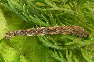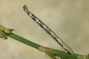 1: vorletztes Stadium in Häutungsruhe (10 mm), Deutschland, Sachsen, Noitzscher Heide, Umg. Lindenhayn, ♀ am 23. Juli 2012 zur Eiablage gebracht, Raupen am 28. Juli 2012 geschlüpft, Zucht mit dürren niedrigen Pflanzen (leg., cult., det. & Foto am 9. August 2012: Heidrun Melzer)