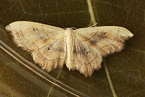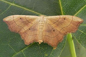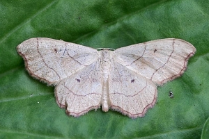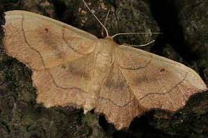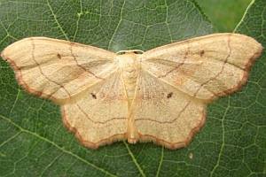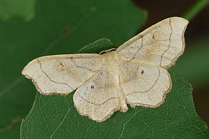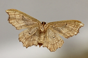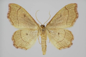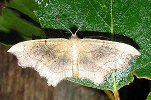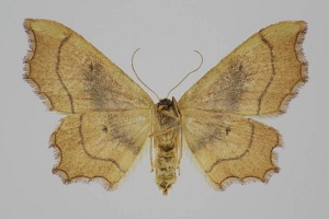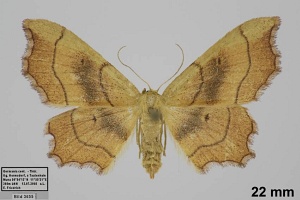 „emarginatus ausgerandet, wegen der Ausnagung des Saumes unterhalb der Vorderflügel-Spitze, weshalb der Falter ehemals zu den Ennomos-Arten gestellt wurde.“