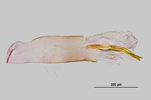 1: ♀, Spanien, Kanarische Inseln, Lanzarote, 1 km s/e Mala, 19°05’ N, 13°27‘ W, 30 m, Lichtfang, leg. Egbert Friedrich & Petra Peuker, 28. März 2018 (präp., gen. det. & fot.: Harald Lahm)Forum