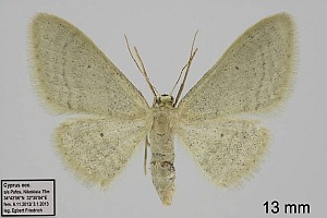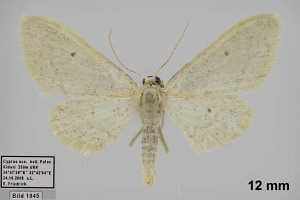 Freilandmännchen dieser Art mit einer Flügelspanne von nur 8-9 mm gehören (gemeinsam mit denen von Eumannia arenbergeri) zu den kleinsten Geometriden Europas. Zuchtfalter sind etwas größer. (Egbert Friedrich)