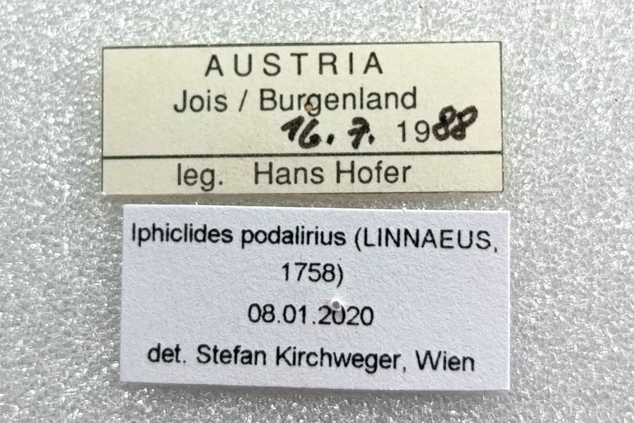 1: ♀: Österreich, Steiermark, Großraum Weiz, aus alter Sammlung, zwischen 1965 und 1968 (det., präp. & fot.: Horst Pichler)Forum 1: Ray (1710: 111) [nach Copyright-freiem Scan auf www.biodiversitylibrary.org] Der Segelfalter (I. podalirius) ist eine Art trocken-warmer offener Hänge.
