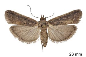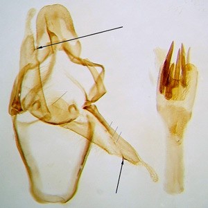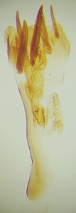 Doch ganz deutlich und mit keiner anderen Phycitinae zu verwechseln, ist die markante Cornuti-Gruppe im Aedeagus. [Friedmar Graf im Forum], leicht verändert.