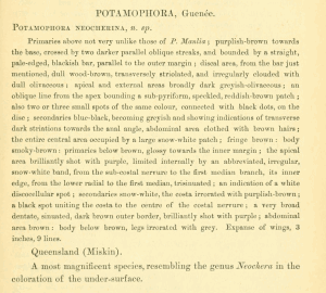 - Original description: Butler, A. G. (1877): Descriptions of three lepidopterous insects from Queensland. — The Entomologist's Monthly Magazine 14: 108-110.