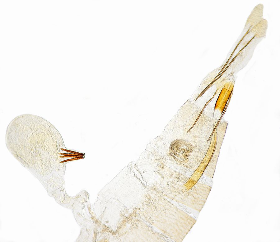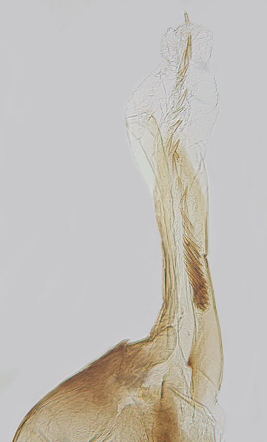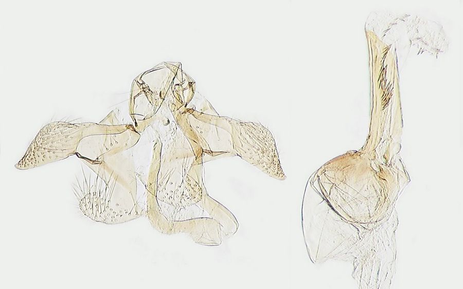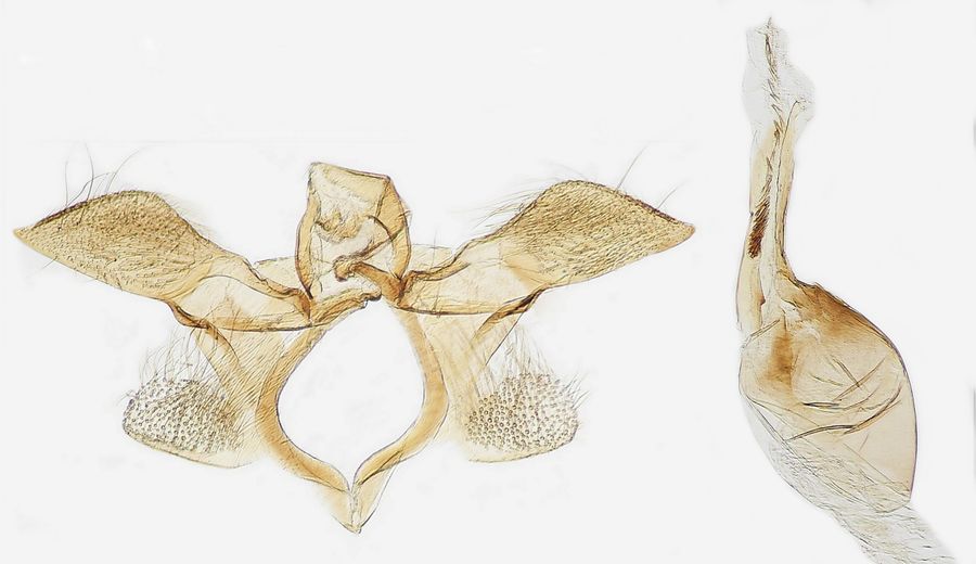 4: ♀, Slowakei, Nitriansky kraj, Pohronská pahorkatina, Hronské Kľačany, Garten, 165 m, 6. Juli 2002 (leg., prep., gen.det. & Foto: František Kosorín), conf. J. NelForum 1: Deutschland, Sachsen, Oberlausitz, Boxberg, 127 m, Rekultivierungsfläche nach Braunkohlenabbau mit Beständen von Färberhundskamille (Anthemis tinctoria), Tagfang am 2. Juni 2002 (leg., gen.det. & Foto: Friedmar Graf)Forum 2: Deutschland, Sachsen, Oberlausitz, Boxberg, 127 m, Rekultivierungsfläche nach Braunkohlenabbau mit Beständen von Färberhundskamille (Anthemis tinctoria), Tagfang am 16. Juni 2001 (leg., gen.det. & Foto: Friedmar Graf)Forum 1-2: Niederlande, Gelderland, 10. Juni 2020, am Licht (präp., det. & Fotos: Joop Schaffers)Forum 3-4: ♂, Slowakei, Banskobystrický kraj, Nízke Tatry, Bystrá, coniferous forest area, 560 m, 3. Juli 2004 (leg., prep., gen.det. & Foto: František Kosorín)Forum 5-6: Slowakei, Nitriansky kraj, Štiavnické vrchy, Rybník, edge of the oak forest, 310 m, 4. Juli 2009 (leg., prep., gen.det. & Foto: František Kosorín)Forum Der fehlende Zahn im Aedeagus unterscheidet das Genital von dem von Isophrictis celsei (Hinweis von František Kosorín).