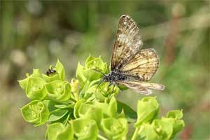 7: Nektaraufnahme an Euphorbia seguieriana: Deutschland, Hessen, Viernheim, 98 m, Truppenübungsplatz, 21. Mai 2016 (Foto: Jutta Bastian)Forum