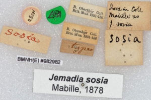 Mit der Oberthür-Sammlung gelangte die Sammlung von P. Mabille ins British Museum (Natural History) in London. W. E. Evans lag daher bei seiner Bearbeitung der Hesperiidae, beginnend mit den Pyrrhopyginae (1951) in London auch die Sammlung von Mabille vor und er fand dort einen Falter, der ein von Mabille handgeschriebenes Etikett sosia trug und erklärte dieses Exemplar als Type dieser Art.