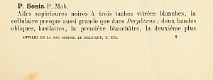 Zur verwirrenden Taxonomie und Nomenklatur des Art-Epithetons sosia siehe die Ausführungen von Ernst Brockmann im Taxonomie-Abschnitt von Jemadia mabillei.