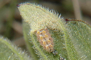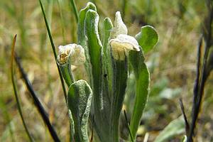 1: typische und unverwechselbare Fraßspuren an Helichrysum arenarium: Deutschland, Brandenburg, 20 km östlich Berlin, 26. Mai 2009 (Foto: Frank Rämisch)Forum
