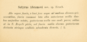 - Satyrus abramovi Erschoff, 1884 [Originalkombination]