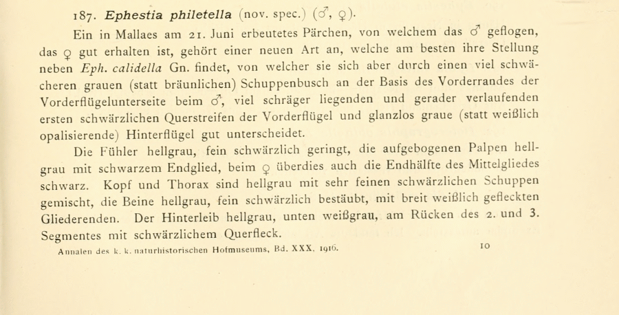 - Ephestia philetella Rebel, 1916 [Originalkombination]