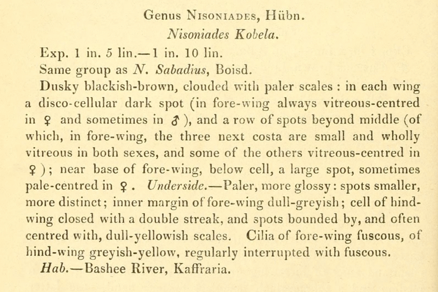 - Nisoniades kobela Trimen, 1864 [Originalkombination]