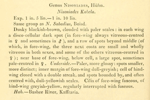- Erstbeschreibung: Trimen, R. (1864): Descriptions of some New Species of Butterflies found in Southern Africa. — The Transactions of the Entomological Society of London. Third Series 2: 175-180. — Digitalisat auf biodiversitylibrary.org: [180]