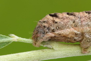 12-16: Russland, Oblast Moskau, Bezirk Orechowo-Sujewo, Station Nerskaja, leg. Raupe 02.08.2015 auf Chamaecytisus ruthenicus, Raupe am 15. August 2015 (leg., cult. ad imaginem, det. & Fotos Andrey Ponomarev)Forum