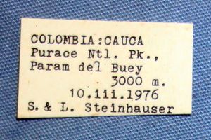 Locus typicus gemäß Erstbeschreibung: Colombia: Cauca; Parque Nac. de Purace, Paramo del Buey, above Coconuco, 3000 m.