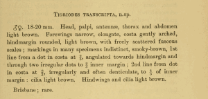- Tigriodes [sic] transcripta Lucas, 1890 [original combination]
