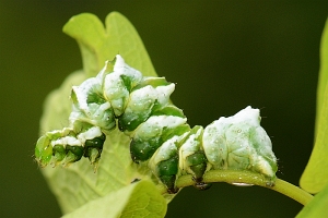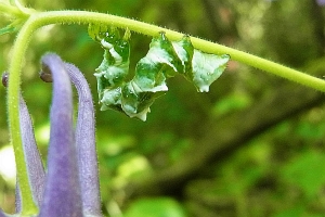 4: Deutschland, Baden-Württemberg, 88356 Burgweiler, Pfrunger Ried, schattiger Waldweg, ca. 620 m, Raupe an Thalictrum aquilegifolium, 30. Mai 2013 (fot.: Jörg Döring)Forum