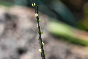 1: L1 an Poa annua: Schweiz, Kt. Bern, Berner Oberland, Oberläger vic. Grindelwald-Burglauenen, 1800 m, Eiablagedatum: 1. Juli 2015 (Zuchtfoto vom 12. Juli 2015: Jürgen Hensle), det. Jürgen Hensle