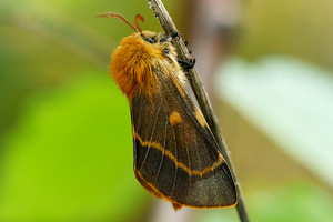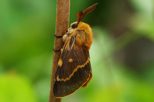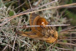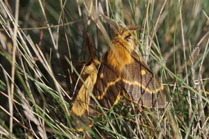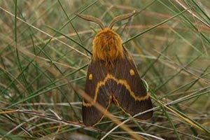 "This species is very similar to Lemonia dumi. Unlike him, batavorum lives only in the Netherlands (from where it was described), or it is still possible to occur in Belgium or western Germany. This is a Western European species from the heaths, which was apparently isolated from the dumi for a long time. It is already different to the naked eye. Batavorum is much darker, has thin lines on the wings (dumi has them wide) and the dot on the front wings has a red tint (it is always yellow in dumi). The different characters are shown in the picture. There are also differences in the reproductive organs of both species and 1.92% in DNA. Batavorum also has a different bionomics, with the moths flying even at very low temperatures. Batavorum males are faster and more active than dumi. Their flight is violent and wild, and in breeding conditions they destroy their wings very quickly. In breeding, I hybridized dumi with batavorum. The hybrid offspring bore the characteristics of mainly dumi - they had wide bands on their wings. A few individuals had a reddish tinge and darker coloring. Subsequently, I attracted male dumi from nature to the females of these hybrid offspring, with whom they mated. However, only 8-10% of the eggs hatched from their eggs, while the others were sterile. The caterpillars had a high mortality and eventually they all died."
