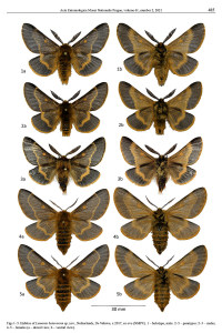 Was war passiert: der Zweitautor hatte 2016 auf der Insektenbörse in Prag ein paar Eier von L. dumi mit Herkunftsdaten aus Holland gekauft - der Sammler der Eier (bzw. des Weibchens) blieb unbekannt - schließlich war L. dumi in den Niederlanden zwar als Art nicht besonders geschützt, da sie dort aber nur aus einem einzigen Nationalpark (Nationaal Park De Hoge Veluwe) bekannt ist, war leicht auszurechnen, dass die Entnahme und der Verkauf der Tiere der Naturschutzbehörde nicht gefallen hätte. Schon die Raupen wirkten anders als solche aus Tschechien, und die Falter waren dann eben dunkler. Also wurde ein Exemplar dem Barcoding zugeführt, mit dem überraschenden Ergebnis einer Abweichnung von 1,92 % gegenüber "normalen" L. dumi. Also wurden noch einmal 2 Tiere gebarcodet - mit dem wenig überraschenden Ergebnis, dass die Barcodes der 3 Tiere identich waren. Deshalb suchte und fand man Genitalunterschiede und beschrieb eine neue Art: "BIN BOLD: AEA3525 (n = 3). The average intraspecific divergence of the barcode region is 0.0 %. Distance to the nearest neighbour is 1.92 %. (L. dumi [BIN BOLD: AAD9009; n = 13 (7 public); records from Finland, Sweden, Czechia, Slovakia, Ukraine, Russia; the average intraspecific divergence of the barcode region is 0.37 %, maximum 0.64 %]). For other details see Fig. 26 and Conclusions."