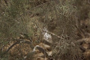 Die Art bevorzugt offenbar einzelne Bäume oder kleine frei stehende Gruppen von Tamarisken (z. B. Tamarix nilotica). Man findet kleine und größere Gespinste, die mit dem Staub zu festen Klumpen verbacken sind. In den größeren Gespinsten leben die Raupen gesellig und man findet in den einzelnen Kammern Raupen oder Puppen. Die Raupen verlassen das Gespinst nur nachts, um zu fressen und kondensierende Feuchtigkeit aufzunehmen. (Roland Breithaupt)