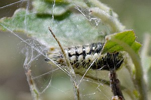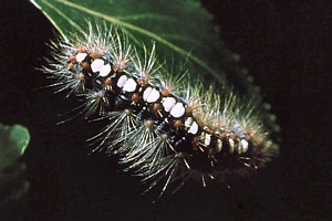 1: Deutschland, Sachsen, Noitzscher Heide bei Lindenhayn, Raupe an Espe Ende Mai 1988, verpuppt im Juni 1988 (Studiofoto: Heidrun Melzer), leg., cult. & det. Heidrun Melzer