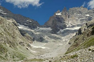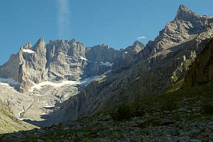 1-2: Frankreich, Hautes-Alpes, Les Ecrins, unterhalb der Refuge du Châtteleret, ca. 2110 m (im Bildhintergrund La Meije), Salix-Zwergsträucher rechts im Vordergrund, 15. August 2012 (Fotos: Martina Görner)Forum