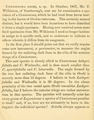 - Cemiostoma orobi Stainton, 1869 [Originalkombination]