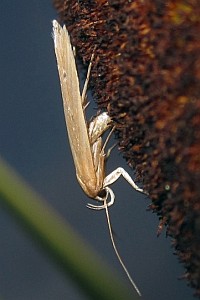 1-3: Befall, Schweiz, Cornaux, 430 m, Sickergrube in Industriegelände, 30. Dezember 2008, Raupen in den Kolben von Typha latifolia, ♂ 25. Februar 2009 (leg., cult., det. & stud. fot.: Rudolf Bryner)Forum