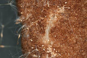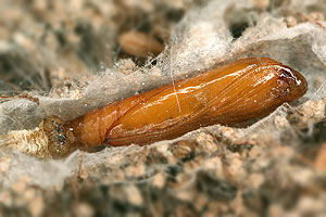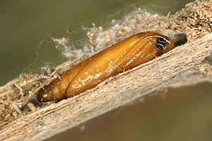 1-4: (1: Puppe und Vorpupppe), (2-4: Puppe), Schweiz, Cornaux, 430 m, Sickergrube in Industriegelände, 30. Dezember 2008, Raupen in den Kolben von Typha latifolia (leg., cult., det. & stud. fot.: Rudolf Bryner)Forum
