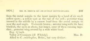 - Erstbeschreibung: Druce, H. (1876): List of Butterflies of Peru, with Descriptions of new Species. — Proceedings of the Scientific Meetings of the Zoological Society of London for the Year 1876: 205-250, pl. XVII-XVIII. — Digitalisat auf biodiversitylibrary.org: [248], [pl. XVIII fig. 8]