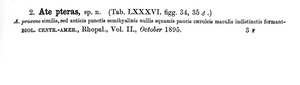 - Ate pteras Godman & Salvin, 1895 [Originalkombination]