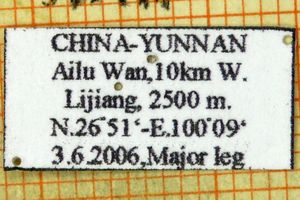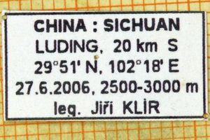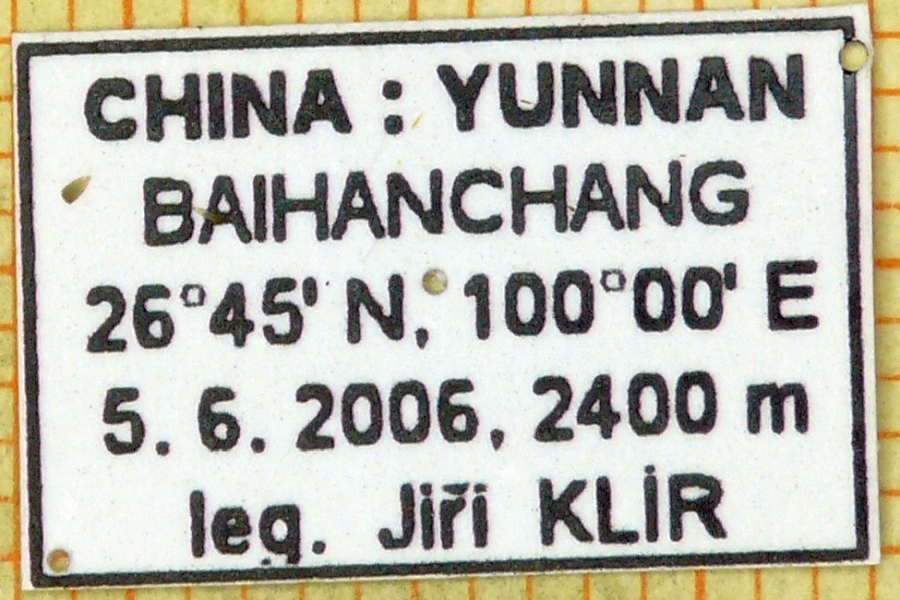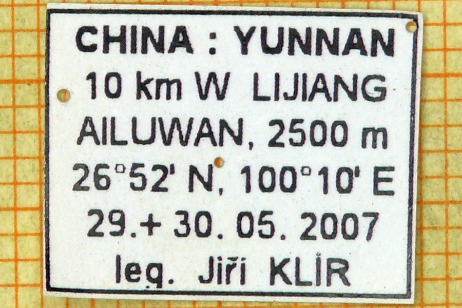 Locus typicus gemäß Erstbeschreibung: Ta-chien-lu, Pu-tsu-fong and Chow-pin-sa [Yunan: Kreis in der chinesischen Provinz Guangdong]..
