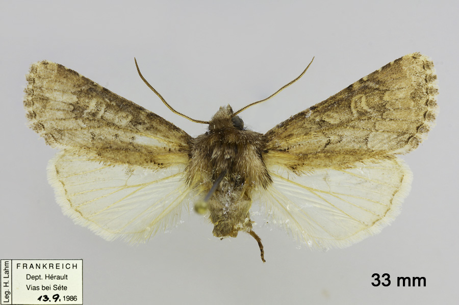 12-13: ♂, Frankreich, Dept. Hérault, Umg. von Sète, Vias, 0 m, am Licht, 13. September 1986 (leg., det. & fot.: Harald Lahm)Forum