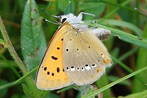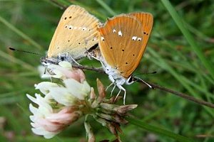 1: Hybridkopula mit L. phlaeas (rechts), Deutschland, Rheinland-Pfalz, Südwestpfalz, Nähe Fischbach, Feuchtwiese, 3. Juli 2005 (Foto: Thomas Schmidt), det. Thomas Schmidt, conf. Erwin RennwaldForum
