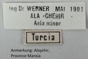 1-3: ♀, Türkei (asiatischer Teil), Mansia, Alasehir, Mai 1901, leg. Dr. Werner (det. cf. & Foto: Stefan Kirchweger)Forum