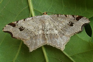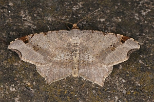 1: Die Unterschiede zwischen Macaria alternata und Macaria notata sind auch bei stark abgeflogenen Exemplaren noch gut sichtbar. Der Außenrand der Vorderflügel ist im oberen Drittel konkav. In dieser Wölbung sind bei alternata die Fransen einheitlich dunkelbraun, bei notata nur zur Hälfte. Der markante dunkle Zelladerfleck ist bei notata sehr groß, bei alternata erheblich kleiner. Macaria alternata weist am Vorderrand sehr deutliche dunkle Flecken auf. Die dunkle Binde ist auf allen Flügeln, auch auf der Unterseite, nur bei dieser Art so deutlich vorhanden. Bei notata ist sie stets verloschen. M. notata hat zudem zwei dunkle Stellen in den Außenrandfransen der Vorderflügel. (Grafik und Text: Hans-Joachim Weigt)Forum