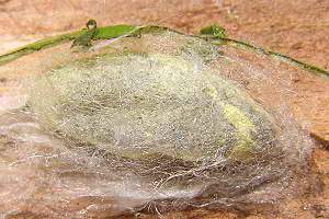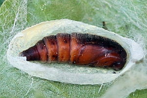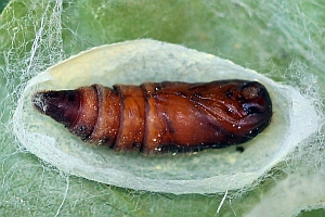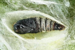 1: Puppenkokon, Deutschland, Schleswig-Holstein, Bokelsesser Moor, Raupe am 6. Juni 2006 gefunden (Foto am 11. Juni 2006: Birgitt Piepgras), leg., cult. & det. Birgit PiepgrasForum