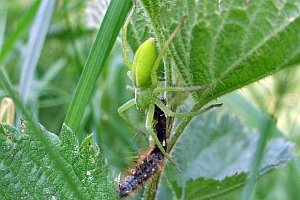 1-2: Micrommata virescens, (Grüne Huschspinne): Deutschland, Niedersachsen, Region Hannover, Burgdorfer Holz, Beerbusch bei Burgdorf, 65 m, 11. Mai 2011 (det. & Freilandfotos: Thomas Fähnrich)Forum