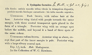 - Erstbeschreibung: Hewitson, W. C. (1868): Descriptions of one hundred new species of Hesperidae. Part II.: 25-56. London (John van Voorst).