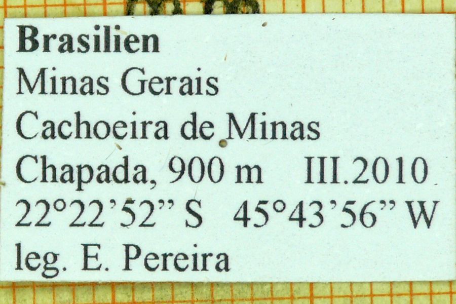 4-6: ♀, Daten siehe Etiketten (fot.: Ernst Brockmann, Fotos bearbeitet: Michel Kettner), coll. Departamento de Zoologia, Universidade Federal do Paraná, Curitiba, Paraná, Brazil.