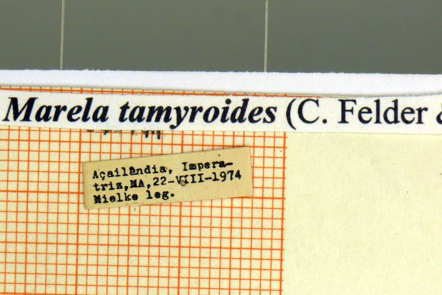 - Erstbeschreibung: Felder & Felder & A. F. Rogenhofer (1864-1867): Reise der österreichischen Fregatte Novara um die Erde in den Jahren 1857, 1858, 1859 unter den Befehlen des Commodore B. von Wüllerstorf-Urbair. Zoologischer Theil. Zweiter Band. Zweite Abtheilung: Lepidoptera. Atlas: 1-10 (Inhalts-Verzeichniss pl. I-LXXIV), 1-10 (Erklärung der Tafeln LXXV-CVII), 1-20 (Inhalts-Verzeichniss Tafeln CVIII-CXL), pl. I-CXL.