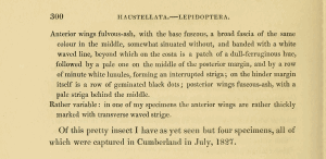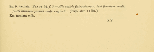 „taenia Binde, wegen der dunklen Querbinde auf den Vorderflügeln.“