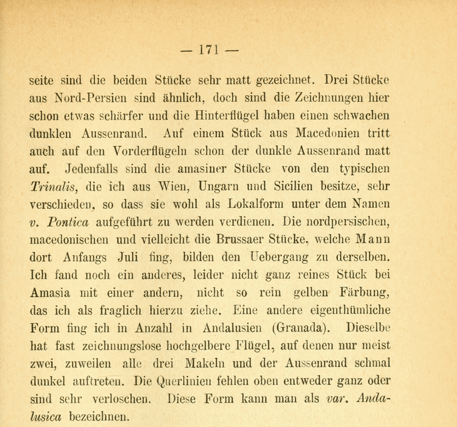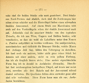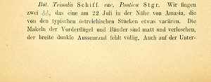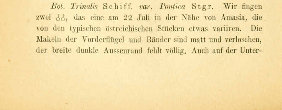 - Erstbeschreibung: Staudinger, O. (1879-1880 [159-368: 1879; 369-435: 1880]): Lepidopteren-Fauna Kleinasien's. — Horae societatis entomologicae rossicae 15: 159-435. St. Pétersbourg (V. Besobrasoff & Comp.).